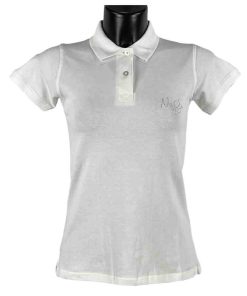 Polo donna in 95% cotone, 5% elastan con logo in strass termosaldati.