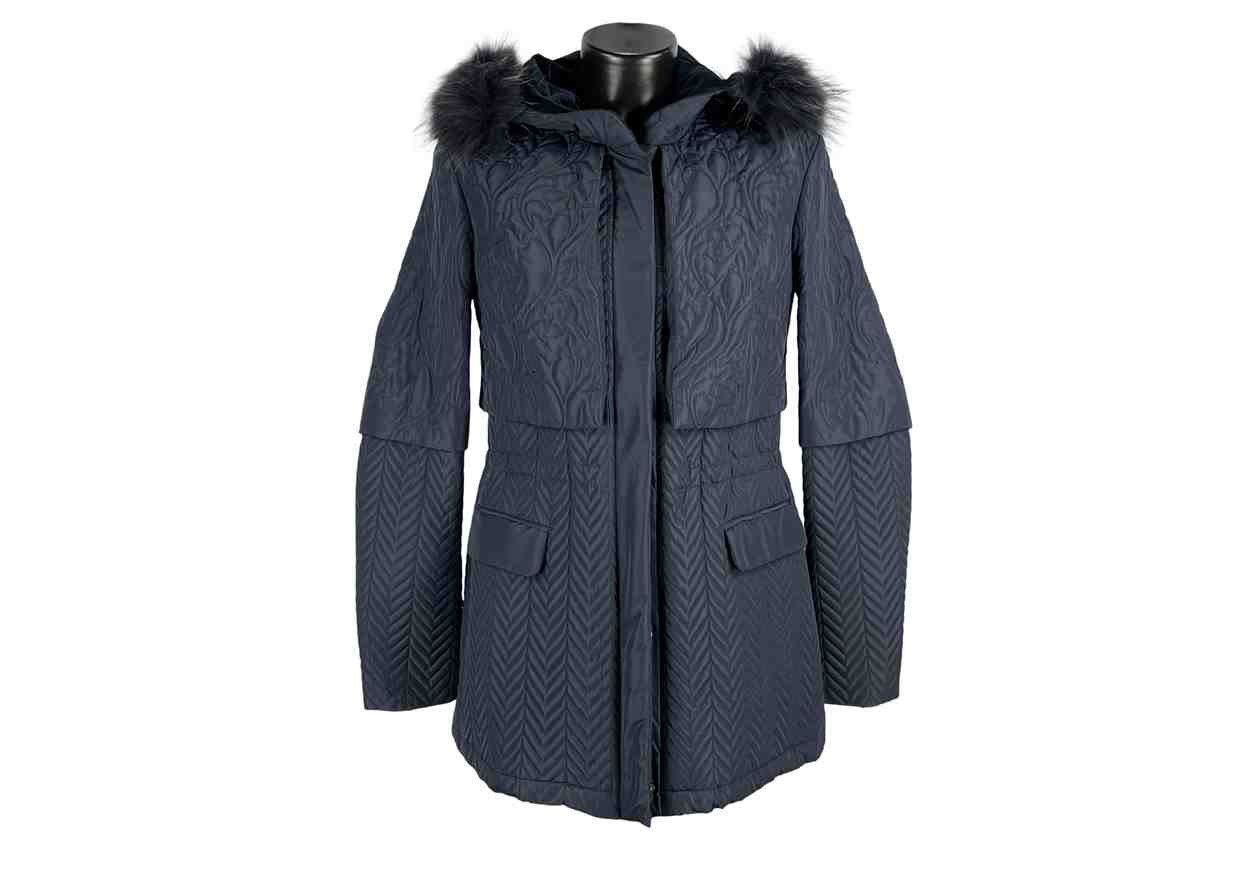 3/4 imbottito donna in 100% poliestere con coulisse, cappuccio e pelliccia di raccoon staccabile.