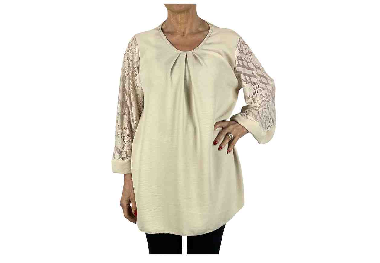 BEATRICE DE BLANCK Maglia in tinta unita con pizzo su maniche lunghe.