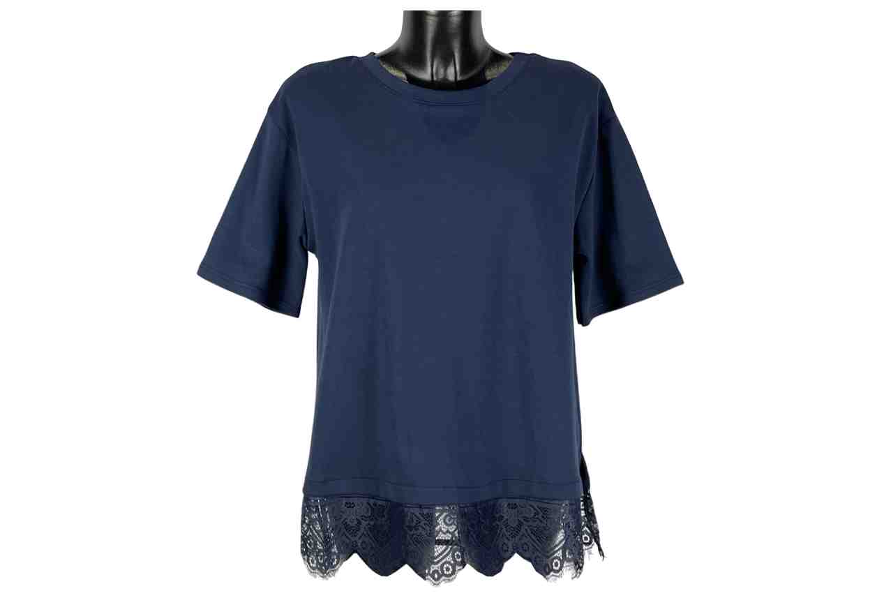 BEATRICE DE BLANCK Maglia in tinta unita con pizzo sul fondo, maniche corte.