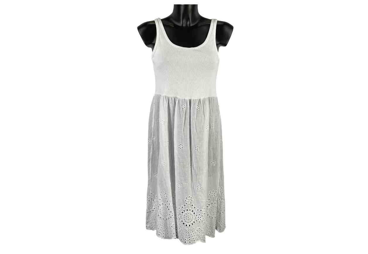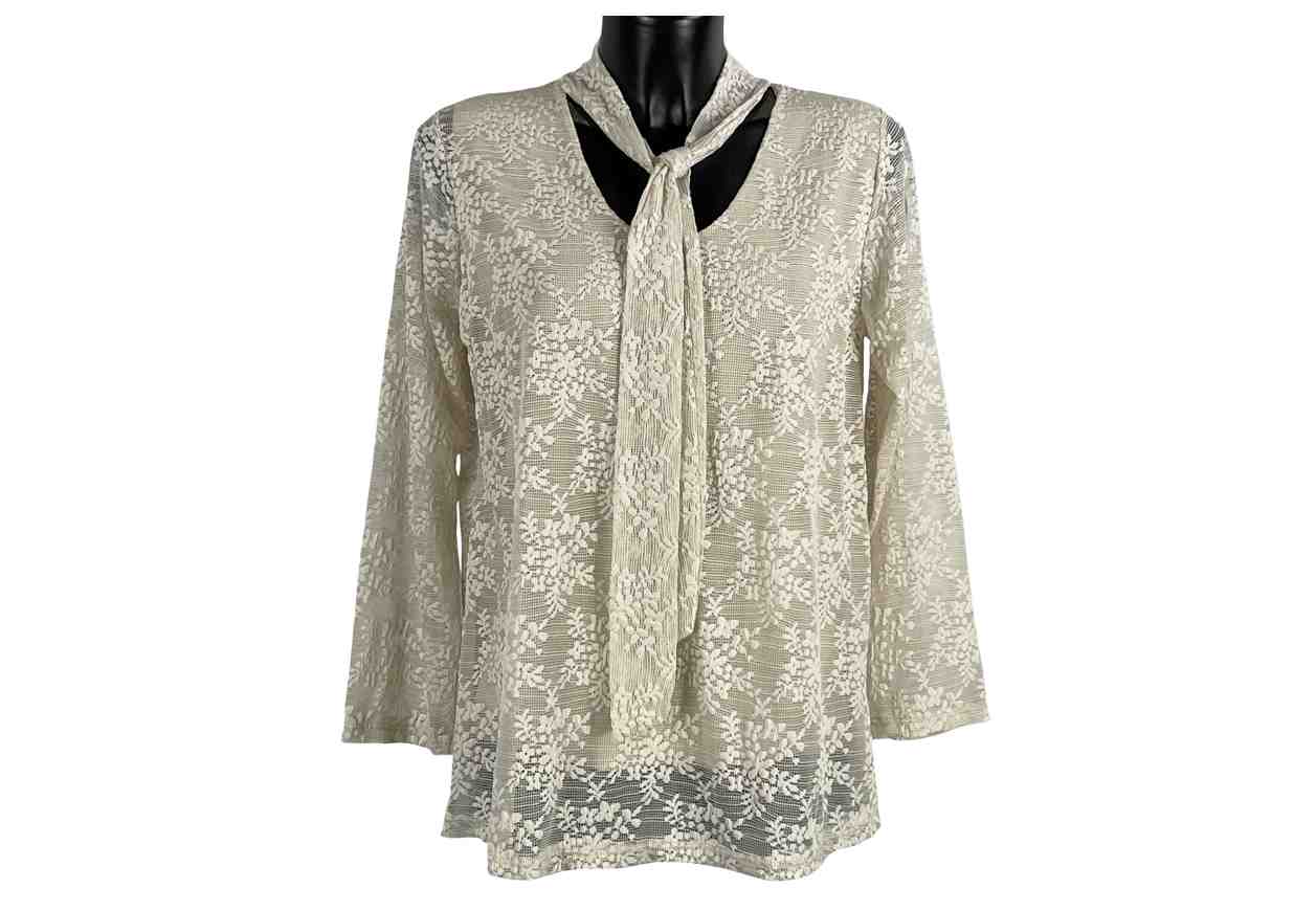 BEATRICE DE BLANCK Camicia in cotone con inserto in sangallo, tinta unita e manica corta.