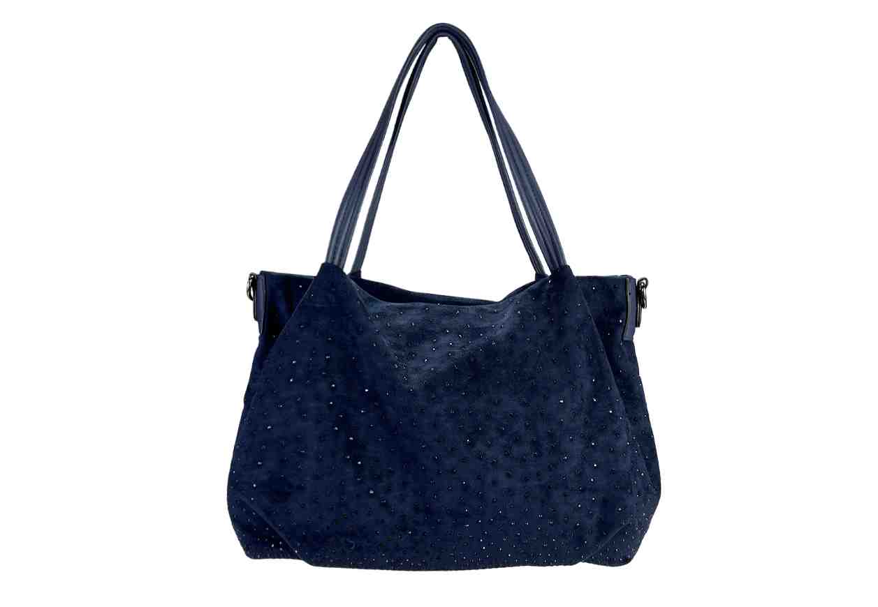 BETA.B Borsa in simil camoscio con strass frontali, tracolla regolabile e removibile.