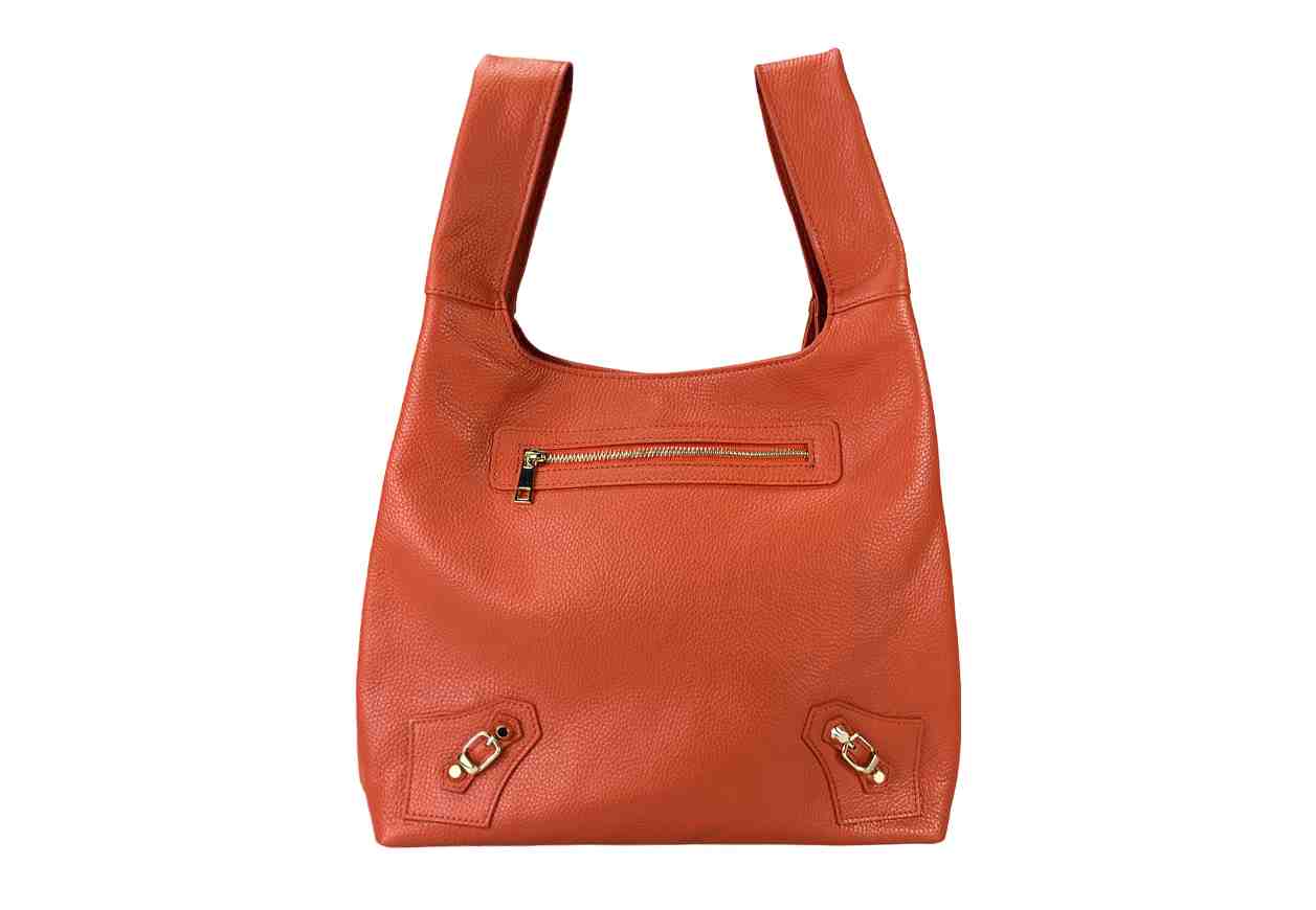 Borsa a braccio e spalla in 100% pelle di vitello pieno fiore con ampi manici tasca esterna e tracolla.