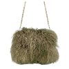 Borsa con patta in montone riccio, tracolla e tasche interne. Fodera in pelle di vitello.