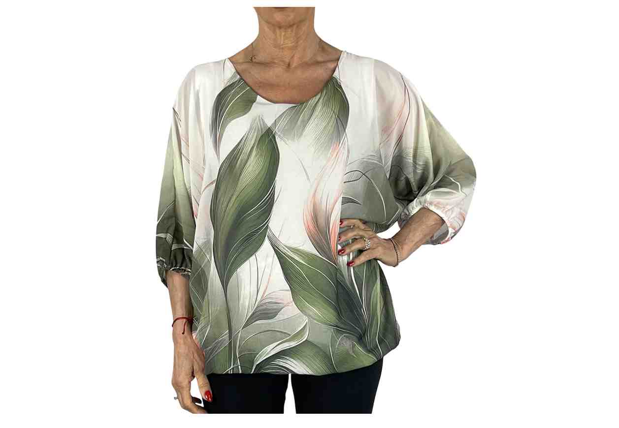 BU Maglia in voile in fantasia piume, fodera interna.
