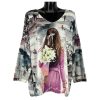 BUTTERFLY Maglia con stampa natalizia in misto lana, scollo a V e bordi in filo lurex.