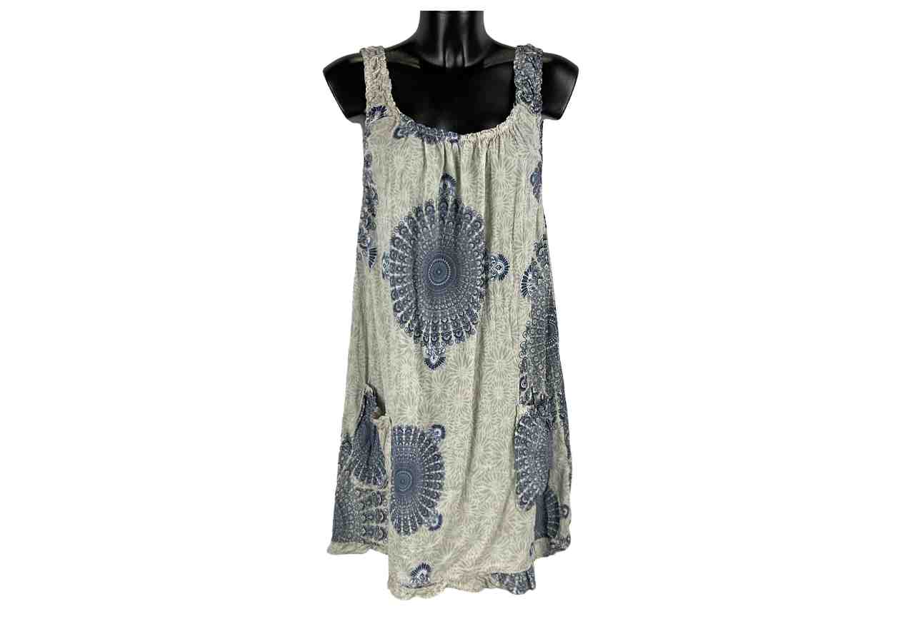 BUTTERFLY Mini abito smanicato in fantasia mandala con elastico sullo scollo.