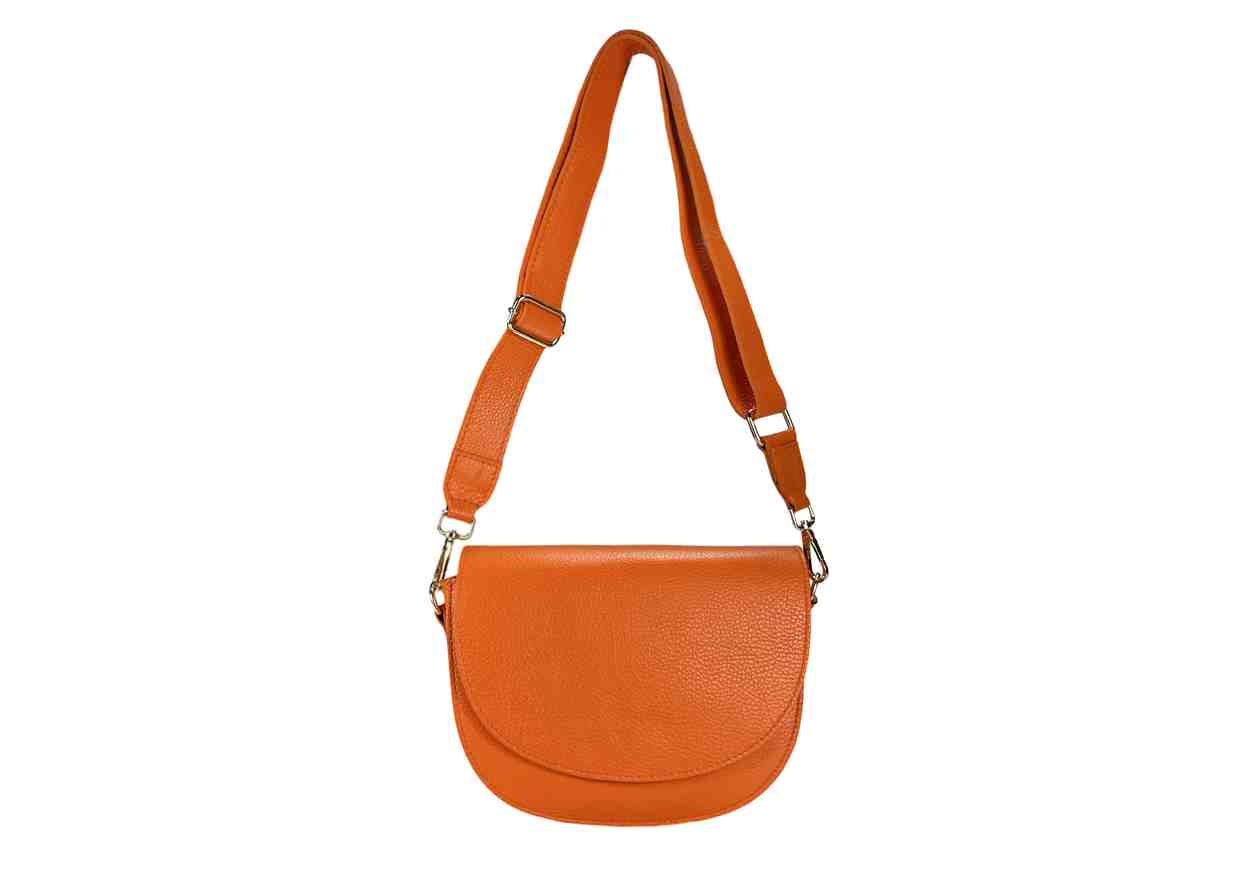 Cacciatora strutturata in 100% pelle di vitello doppiata, patta e zip in chiusura, tracolla regolabile.