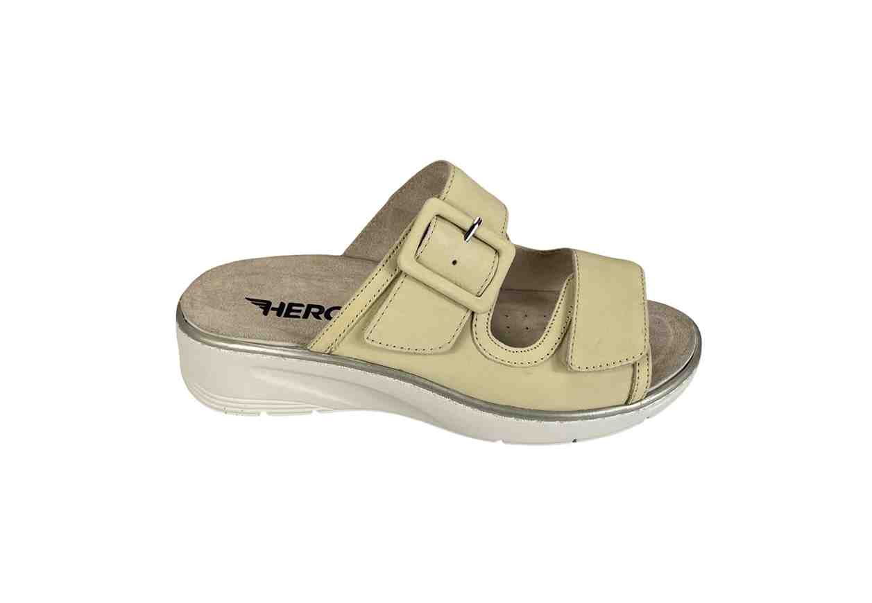 HERGOS Ciabatta in pelle con doppio velcro e fibbia.