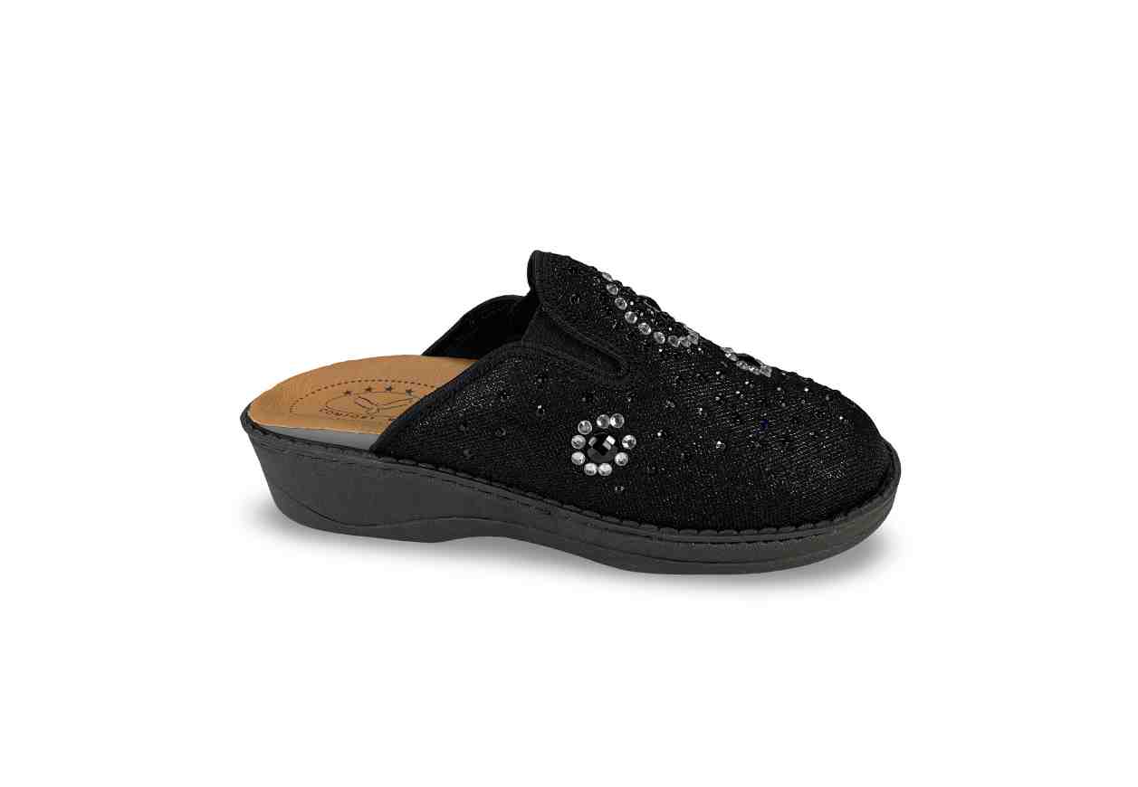 COMFORT RELAX Ciabatta con strass in dettaglio, tacco a zeppa.