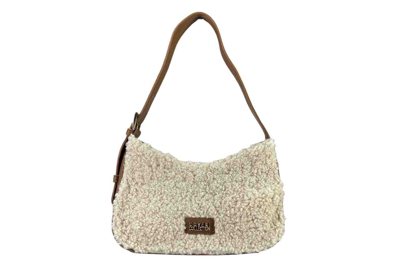 COVERI COLLECTION Borsa in bouclè con logo frontale, scomparto con zip, manico regolabile.