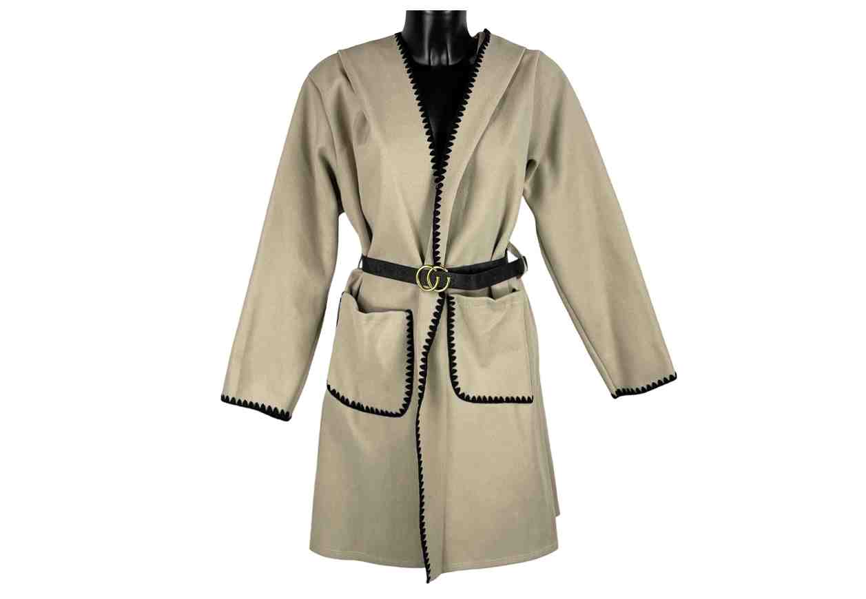 GRETA GARBO Giacca in misto lana, con bordi ricamati, cappuccio, cintura in vita e tasche frontali.