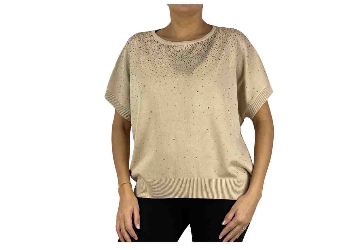 GRETA GARBO Maglia con strass in tinta unita, maniche corte.