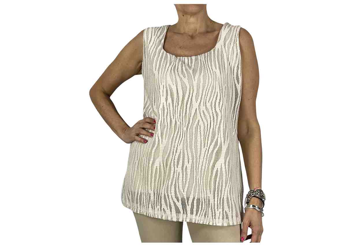 GG Maglia smanicata traforata in fantasia zebrata.
