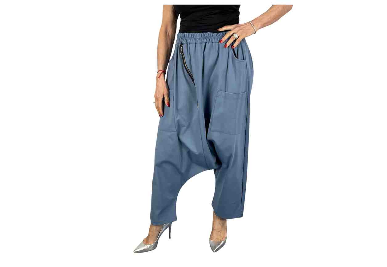 GRETA GARBO Pantalone con cavallo basso, tasche e zip frontale, elastico in vita.