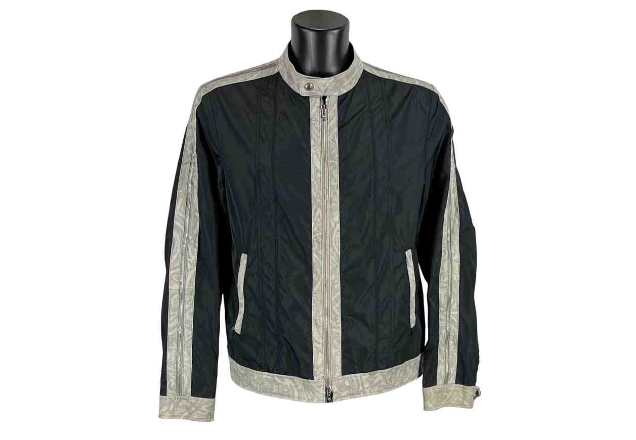 Giubbino uomo in poliestere e inserti pelle ovino, full zip e tasche.