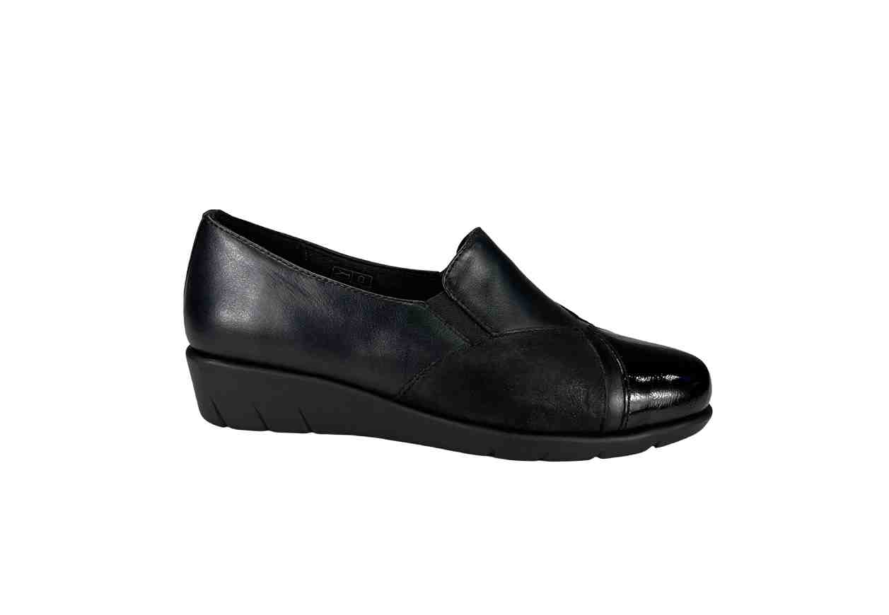 GREEN LAND Mocassino in pelle con motivo frontale ed elastici laterali, tacco a zeppa.