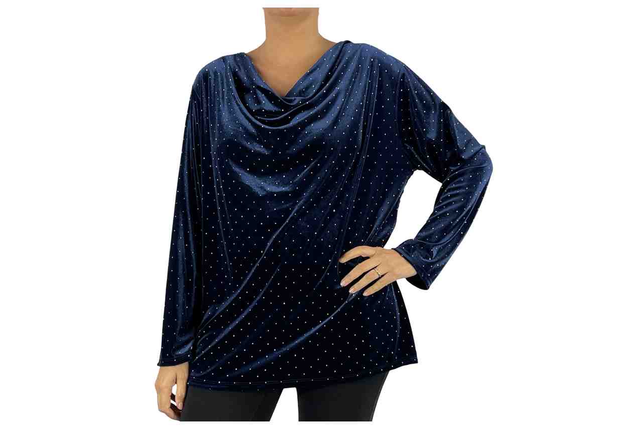 GRETA GARBO Maglia in simil velluto con strass, scollo a gronda.