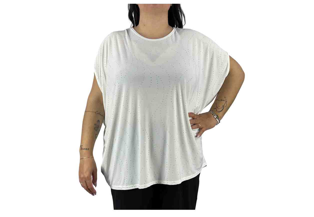 GRETA GARBO Maglia in tinta unita con strass, maniche corte a pipistrello.
