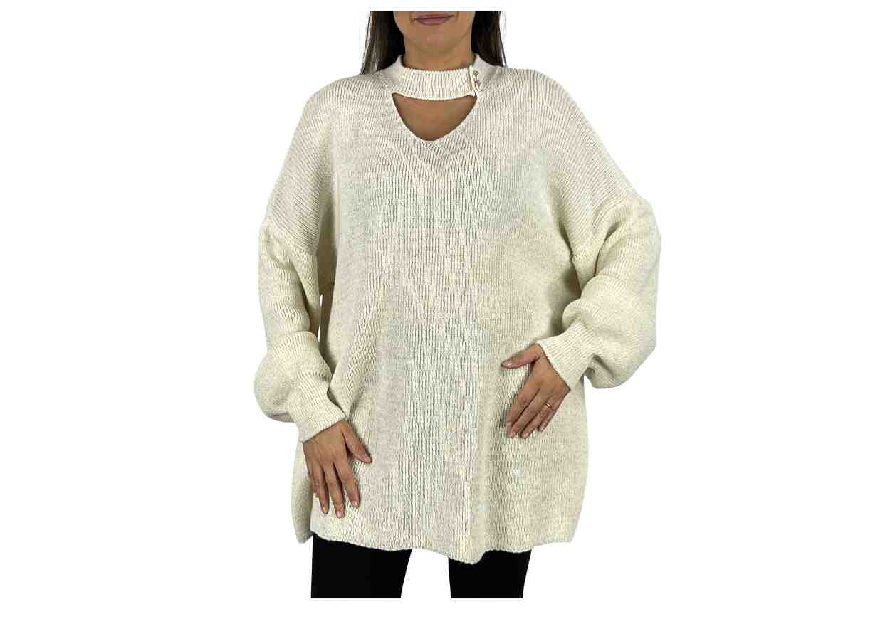 GRETA GARBO Maxi maglia con filo lurex, dettaglio su scollo a V.