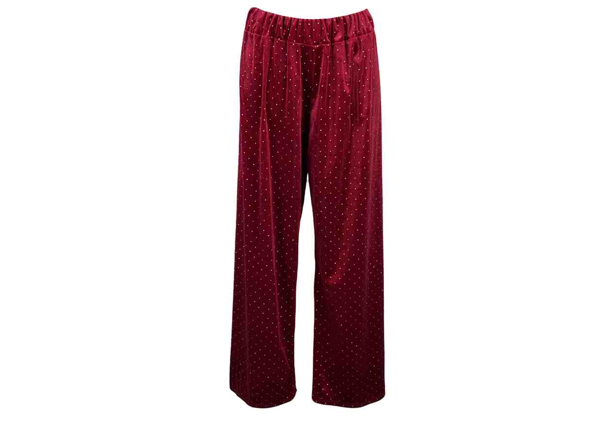 GRETA GARBO Pantalone in tinta unita, effetto velluto con strass ed elastico in vita.