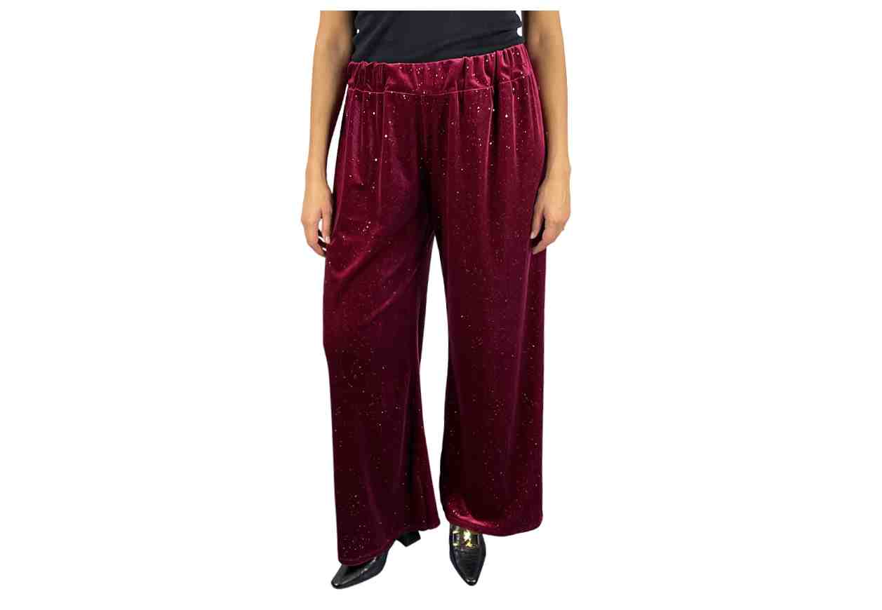 GRETA GARBO Pantalone in simil velluto con punti luce, elastico in vita.