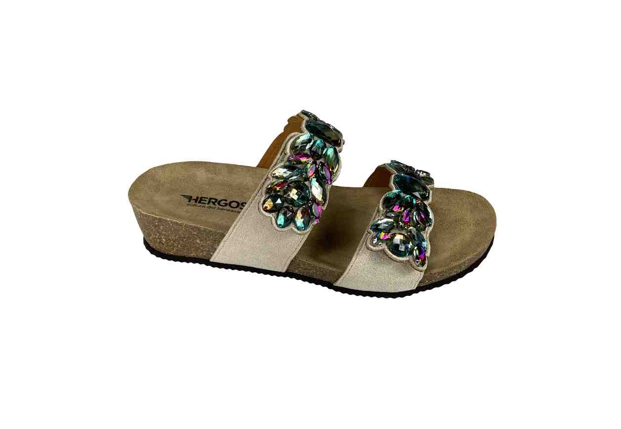 HERGOS Ciabatta in pelle a doppia fascia, con pietre colorate
