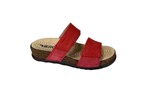 HERGOS Ciabatta in pelle con doppio velcro, tacco a zeppa.