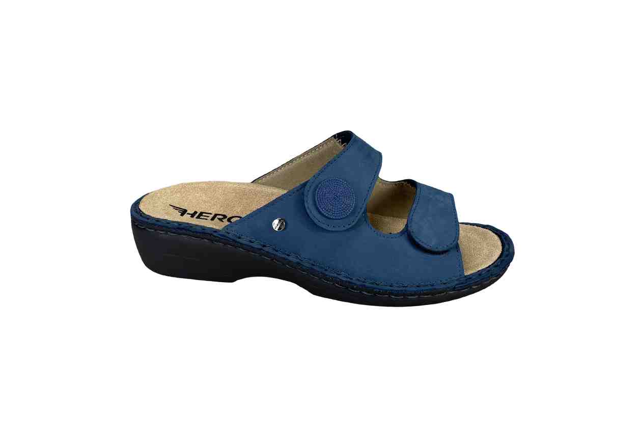 Descrizione prodotto:HERGOS Ciabatta in pelle con doppio velcro, tacco a zeppa.