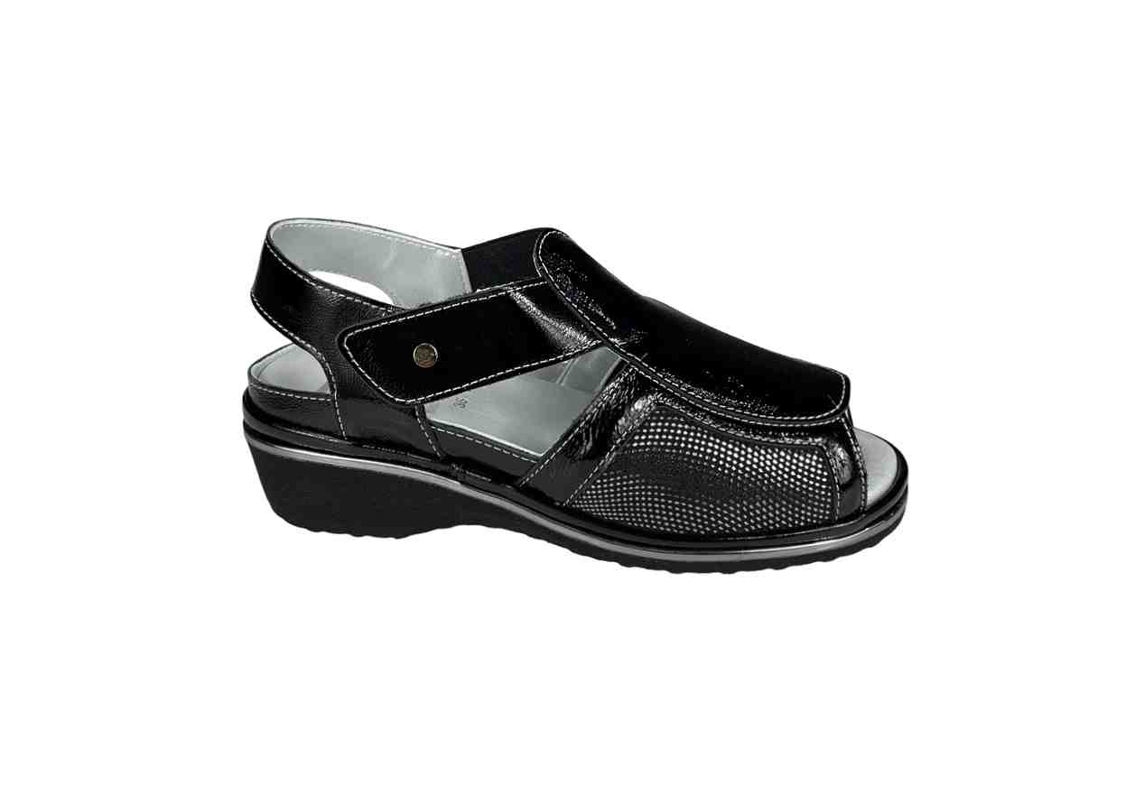 Descrizione prodotto:HERGOS Sandalo in pelle verniciata, chiusura con velcro.