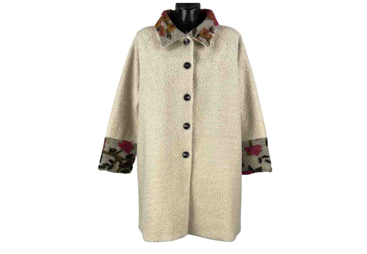 PINK LOVE Cappotto in lana cotta, fantasia floreale su scollo e polsini.
