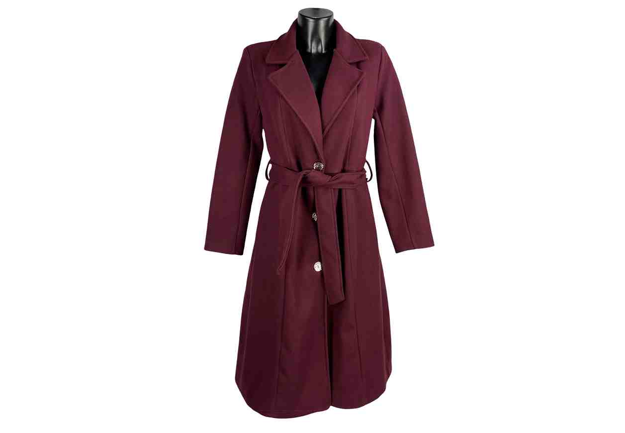 PINK LOVE Cappotto in tinta unita con cintura in vita, collo rever e bottoni frontali.