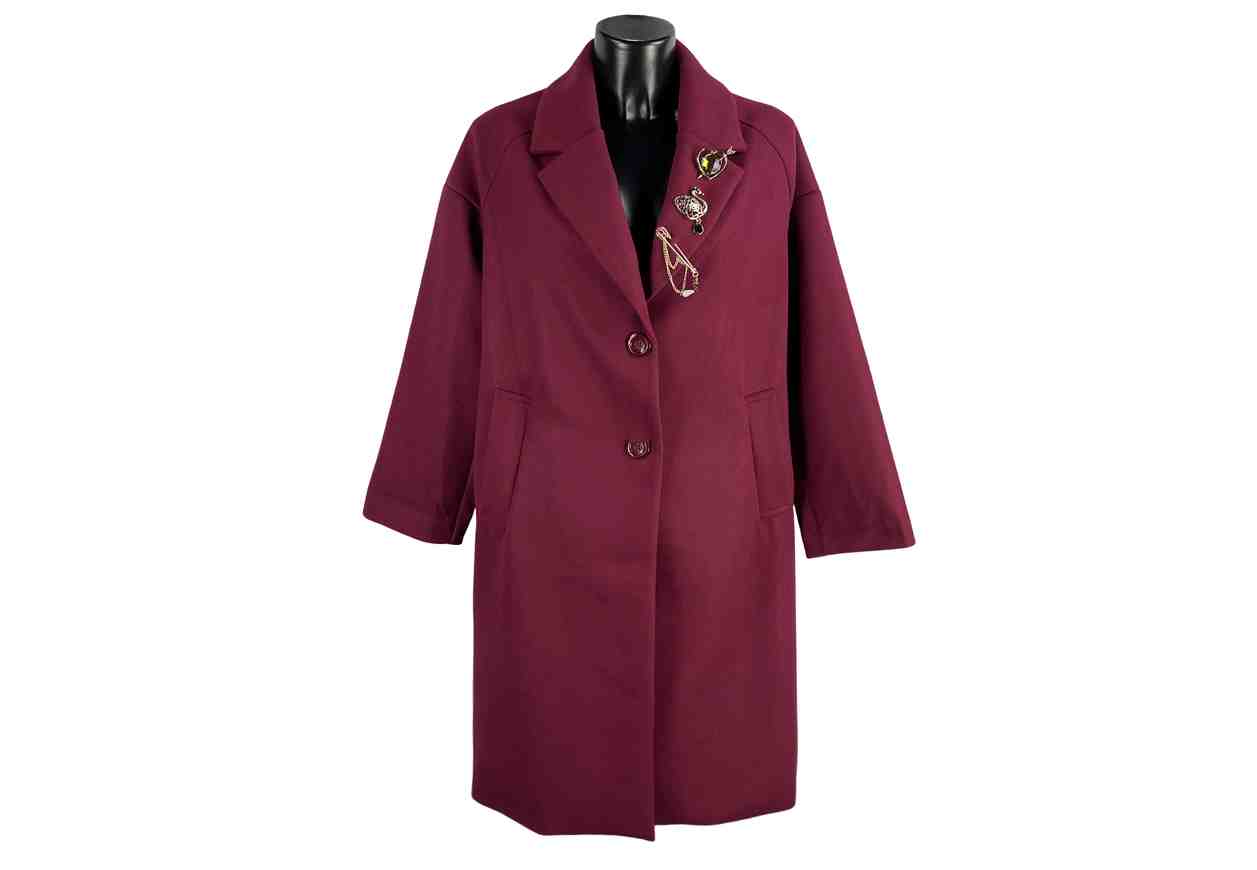 PINK LOVE Cappotto in tinta unita, spille in dettaglio, interno animalier.