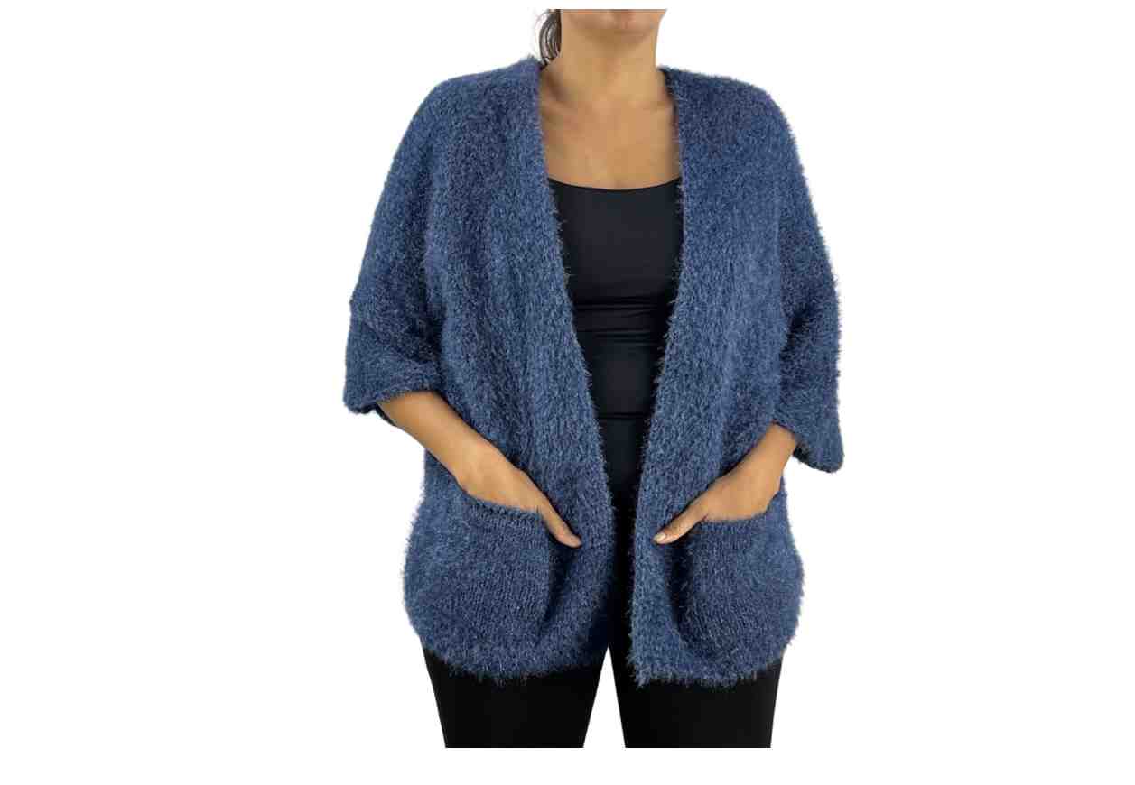 PINKLOVE Cardigan aperto in tinta unita effetto peluche, tasche frontali, manica 3/4.