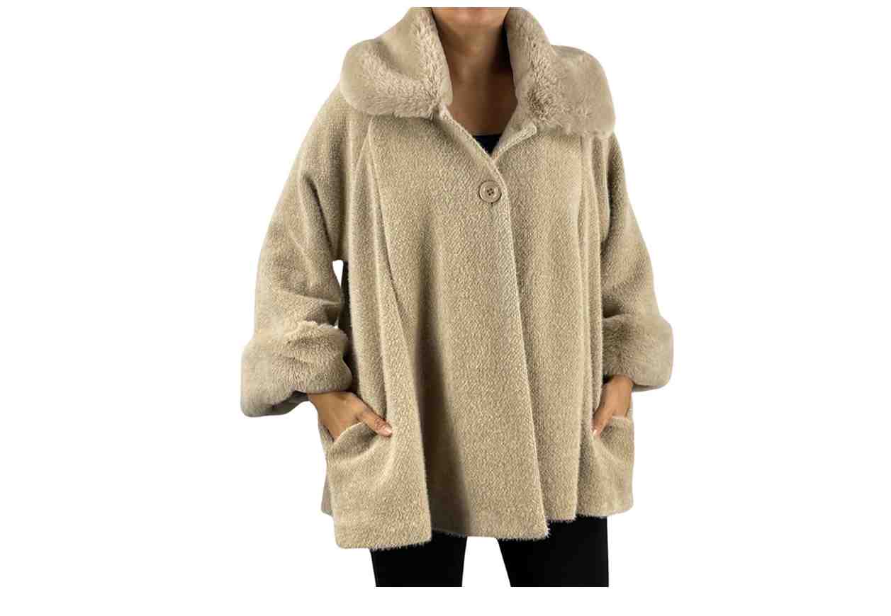 PINK LOVE Giacca in tinta unita, collo e polsini in ecopelliccia, bottoni centrali di chiusura.
