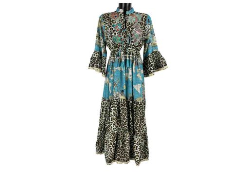 PINK LOVE LUX Abito lungo in fantasia con perline e nappine in dettaglio, elastico in vita.