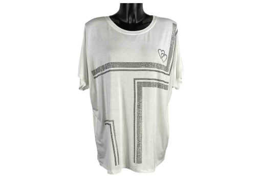 PINK LOVE Maglia in tinta unita con motivo in strass, girocollo e maniche corte.