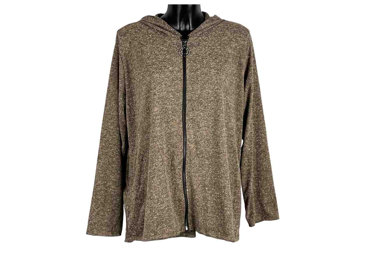 PINK LOVE Maglia in tinta unita effetto melange con strass, full zip, tasche e cappuccio.