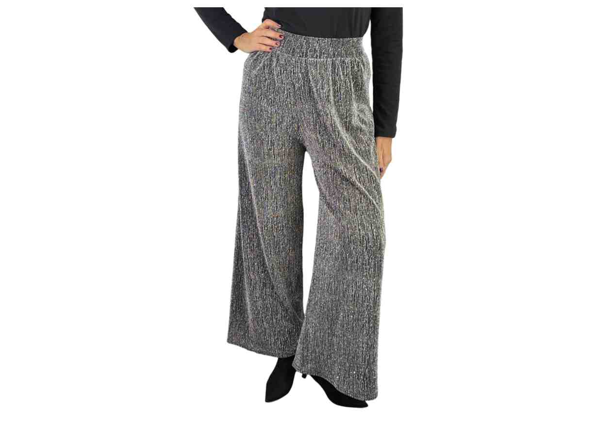 PINK LOVE Pantalone ampio con inserto filo lurex e strass, elastico .