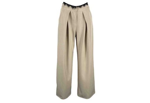PINK LOVE Pantalone in tinta unita con inserto in pizzo vita, chiusura con bottone e zip.