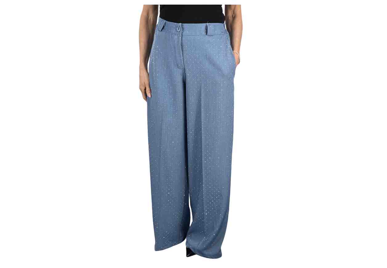 PINK LOVE Pantalone in tinta unita con strass, tasche e chiusura con zip e bottone.