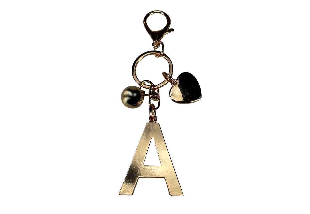 PINK LOVE Portachiavi metallizzato con charm e lettera.