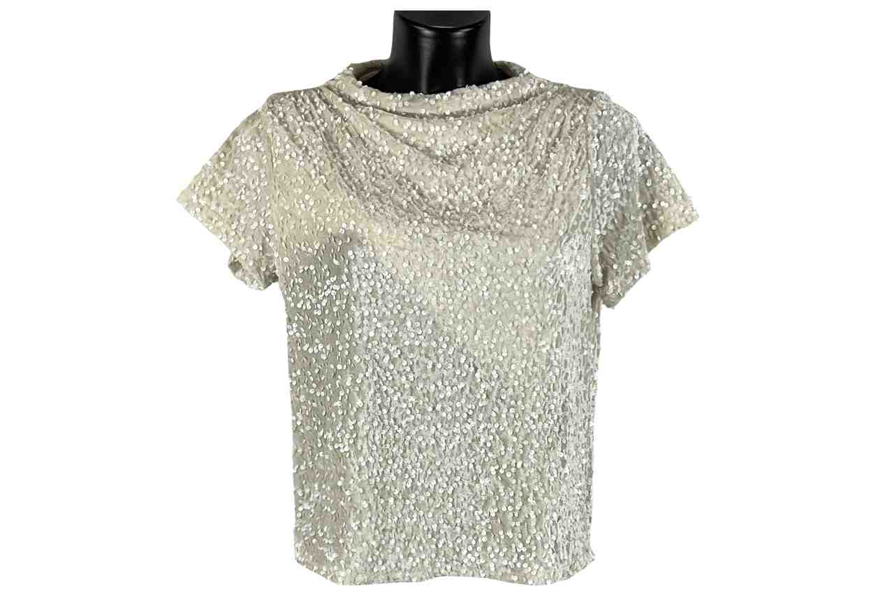 PINKLOVE Blusa in tinta unita con paillettes, manica corta.