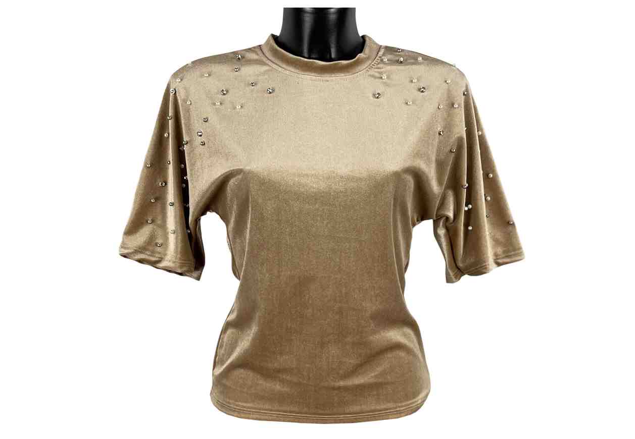 PINKLOVE Maglia in simil velluto con perline e strass.