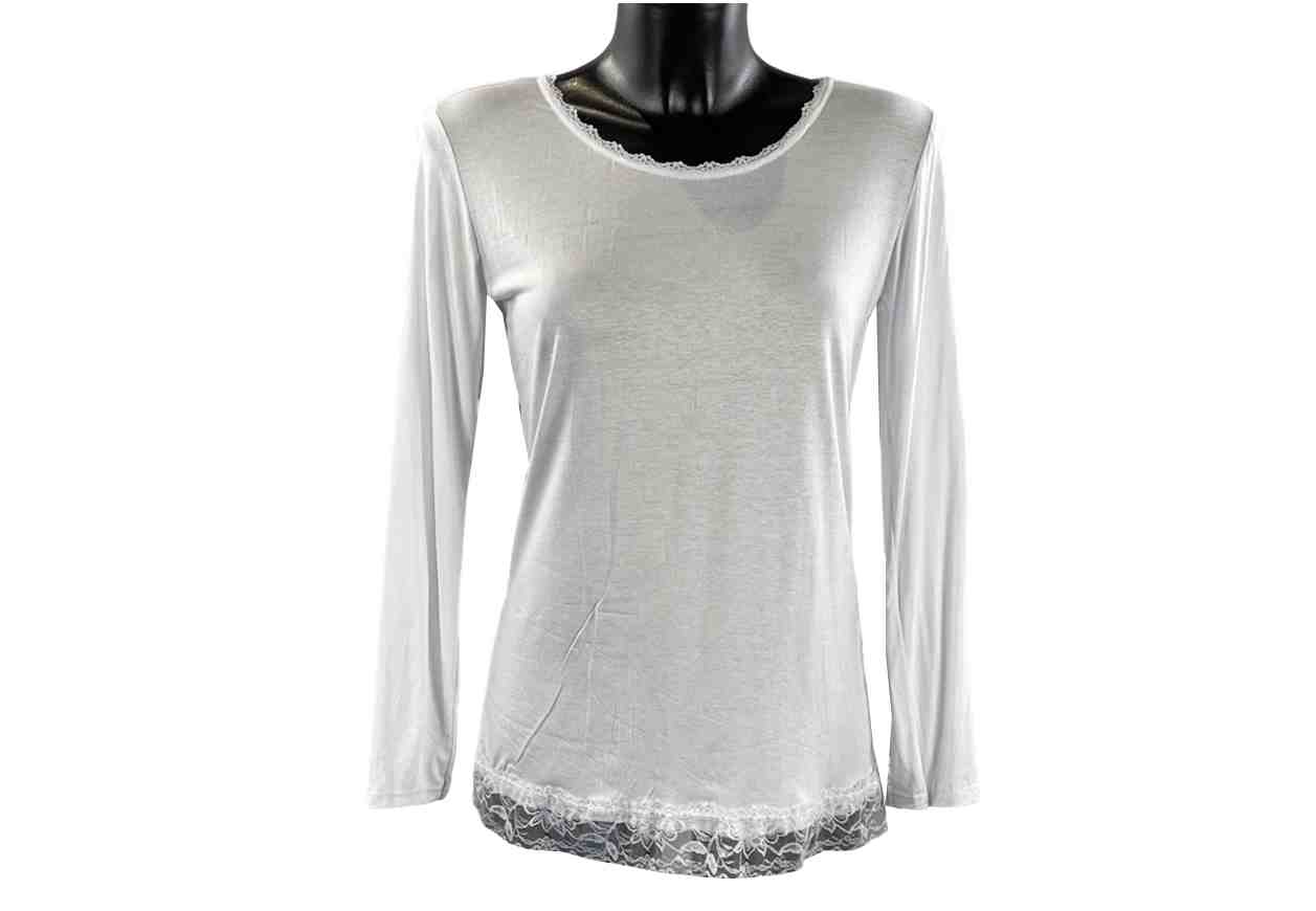 PINKLOVE Maglia in tinta unita, manica lunga e pizzo sul girocollo e fondo.