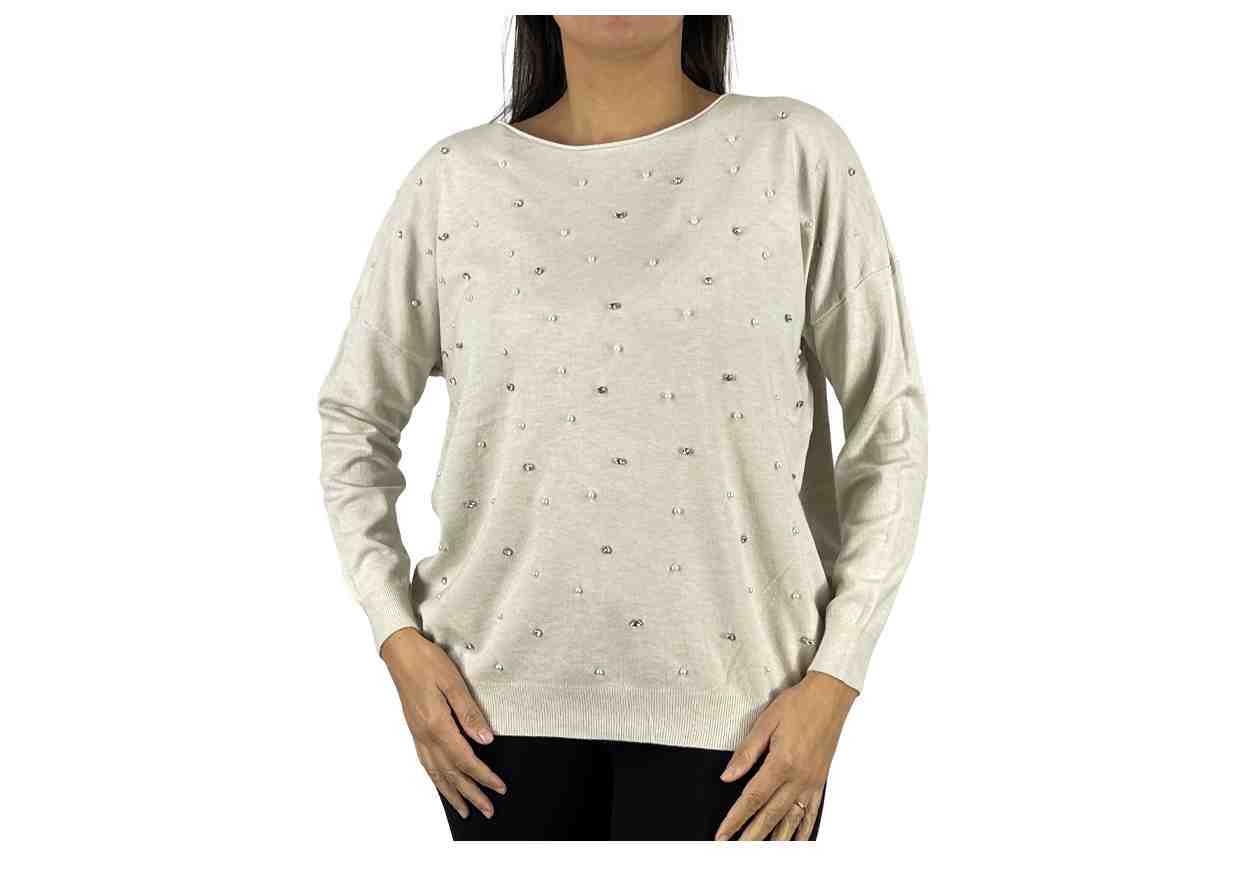 PINKLOVE Maglia in tinta unita con perline e strass.