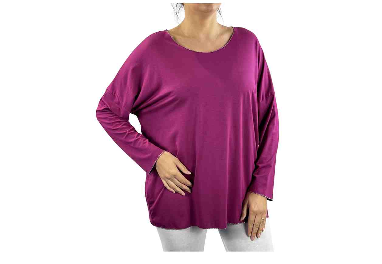 PINKLOVE Maglia in tinta unita, manica lunga dettaglio lurex su scollo e polsini.
