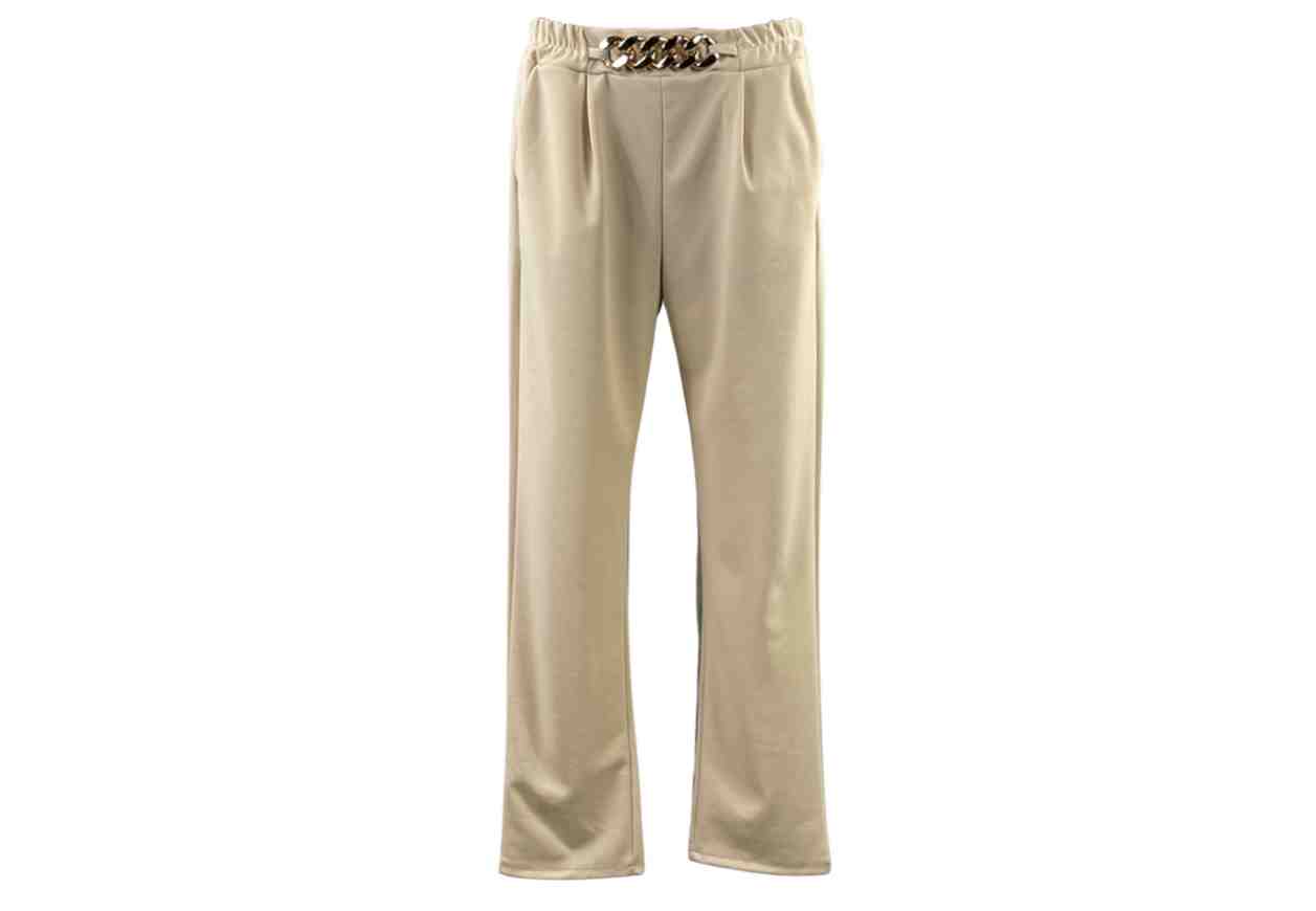 PINKLOVE Pantaloni in tinta unita, elastico in vita con dettaglio catena oro, tasche laterali.