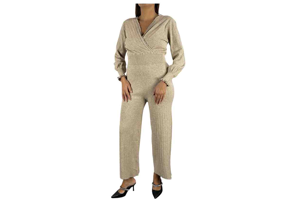 PINKLOVE Tuta in maglia a costine, tinta unita.