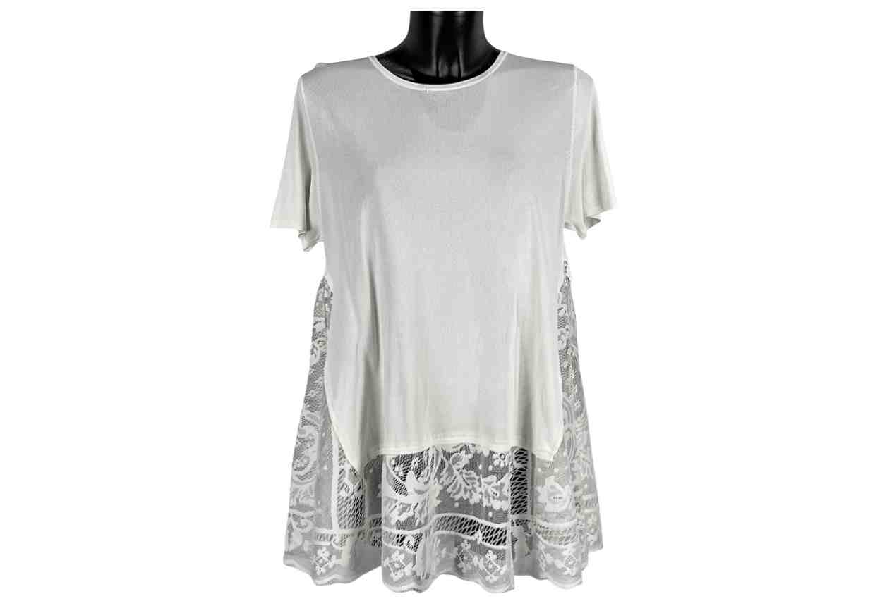 PL Blusa in tinta unita con pizzo, manica corta e girocollo.